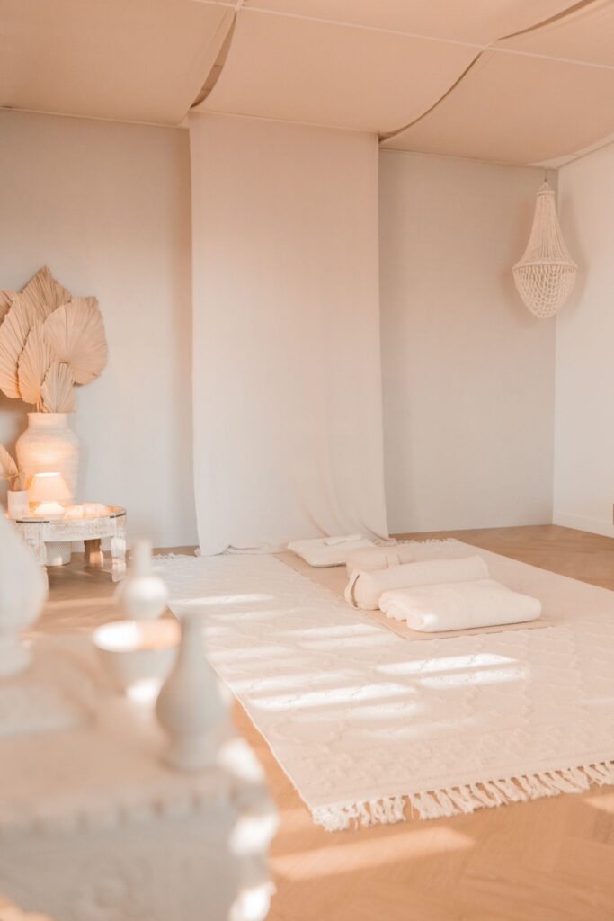 Deze prachtige ruimte is geïnspireerd door Bali. Natuur elementen, veel lichtinval en de mogelijkheid om de ruimte donker te maken voor extra ontspanning. Sfeerlichten, kaarsen, klankschalen en optioneel wierook om de zintuigen te prikkelen.
